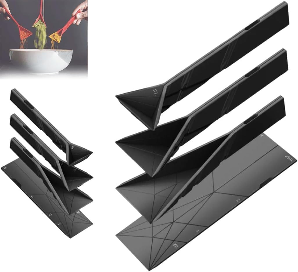 Polygons 3-in-1 Flat Measuring Spoon, 2 Spoons with 6 Different Sizes, Polygons Measuring Spoon Flat, Multifunction Folds Fla.
